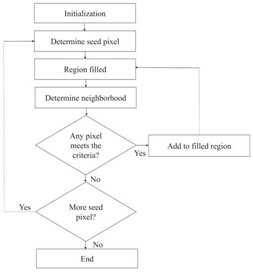 For foggy images containing large sky area, though the non-sky part’s color is comparatively vivid, in most cases the sky region looks gray and homogeneous. To separate the sky region, a separation method based on the floodfill algorithm is introduced. The flowchart for sky portion segmentation process is presented in Figure 3. The description of each step is given below: