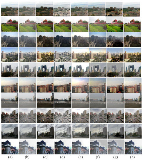 - Cai, B.; Xu, X.; Jia, K.; Qing, C.; Tao, D. Dehazenet: An end-to-end system for single image haze removal. IEEE Trans. Image Process. 2016, 25, 5187–5198. [Google Scholar] [CrossRef]
