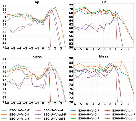 or the unigram distribution estimated from the corpus (ud). Embeddings are denoted by U if in the computation of Equations (5) and (12) the formula used for is Equation (1), while they will be denoted by U+V if Equation (9) is used instead.