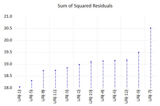 The ARMA and GARCH models were used by Chiros [] to predict the unemployment rate in the UK; Parker and Rothman [] modeled quarterly unemployment rates using the AR model (2), Power and Gasser [] highlighted that the ARIMA (1,1,0) model has better forecasting performance for unemployment rates in Canada. Etuk et al. [] indicated that the ARIMA (1,2,1) model is suitable for forecasting the unemployment rate in Nigeria.