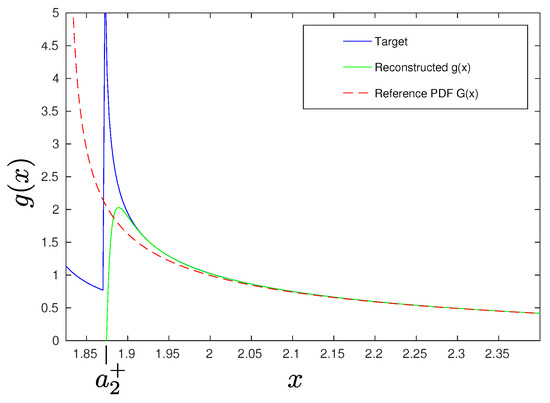 We should stress that the focus of the reconstruction theorem we present is on cumulants which can be directly used for a shape estimation of but not . However, by knowing , we have a complete “information scan” of . Such an information scan is, however, not unique, indeed, two PDFs that are rearrangements of each other—i.e., equimeasurable PDFs, have identical and . Even though equimeasurable PDFs cannot be distinguished via their entropy powers, they can be, as a rule, distinguished via their respective momentum-space PDFs and associated entropy powers. Thus, the information scan has a tomographic flavor to it. From the multi-peak structure of , one can determine the number and height of the stationary points. These are invariant characteristics of a given family of equimeasurable PDFs. This will be further illustrated in Section 6.