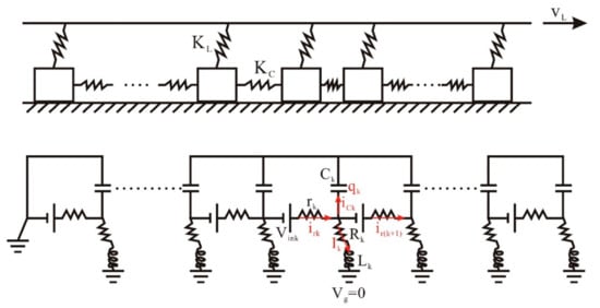 According to the above-mentioned architecture, we can derive the governing equations of the electrical part in the crust within an RLC-type circuit (Figure 1). First of all, Kirchhoff’s voltage law on the k-th block gives the following: