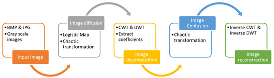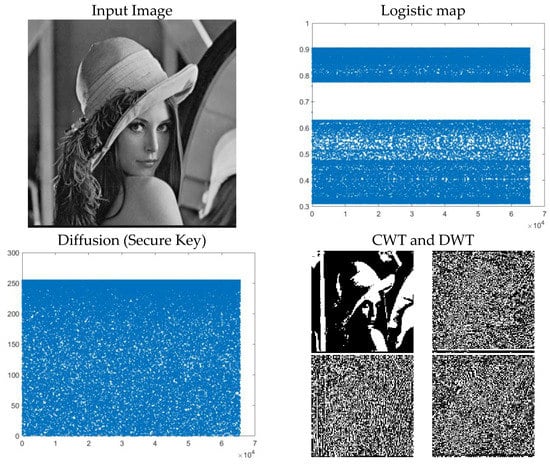 - Satish, T.J.; Theja, M.N.S.; Kumar, G.G.; Thanikaiselvan, V. Image Encryption Using Integer Wavelet Transform, Logistic Map and XOR Encryption. In Proceedings of the 2018 Second International Conference on Electronics, Communication and Aerospace Technology (ICECA), Coimbatore, India, 29–31 March 2018; IEEE: Piscataway, NJ, USA, 2018; pp. 704–709. [Google Scholar]