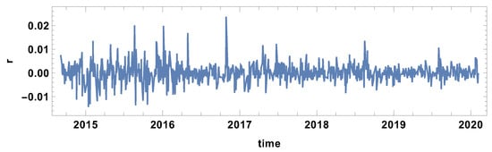 Additionally, the time evolution of the mean return exchange rate is presented in Figure 1. This graph allows for obtaining a general idea of Forex market evolution, particularly to distinguish the periods of instability of the market.