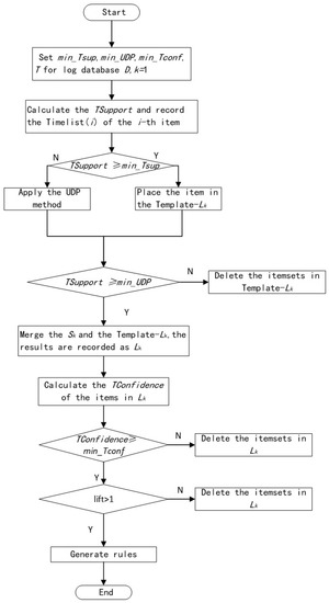 - Wang, L.; Li, L.L.; Meng, J.Y. Temporal association rules mining algorithm based on frequent item sets tree. Control Decis. 2018, 33, 591–599. [Google Scholar]