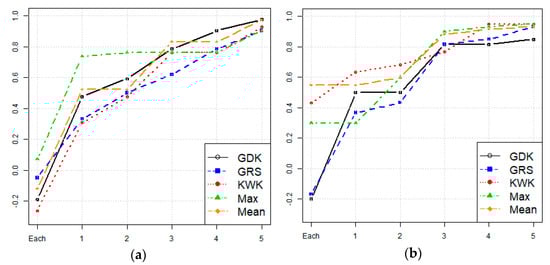 Result of Spearman correlation considering gauged network. (a) Goesan. (b) Hwacheon.