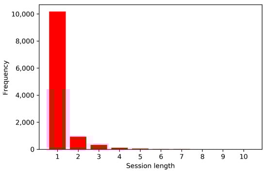 The Local News dataset is a private dataset, presented for the first time in []. The dataset includes the logged interactions to an Italian local news website, for an entire year (from 1 April 2016 to 30 March 2017). All the accesses to the news website are in anonymous form, thus, only interactions within the same browsing session could be personalized. Nevertheless, the length of these sessions is usually very short, with more than 85% of sessions represented by just one interaction, with an average session length of interactions. The distribution of session length is represented in the graph of Figure 4.