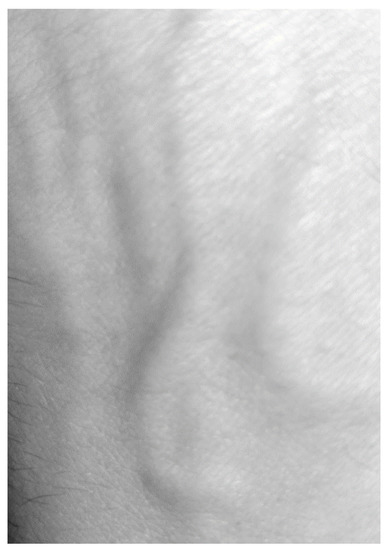 In the next step, we tested the presented method on a group of 31 people. Veins were detected in each of the participants using the proposed method on both hands (Figure 10). The images of veins obtained with the proposed method were compared with the images obtained with the ‘Infrared vein finder Medcaptain NAVI-60’ device. Some examples of vein detection in one randomly selected participant is described below.
