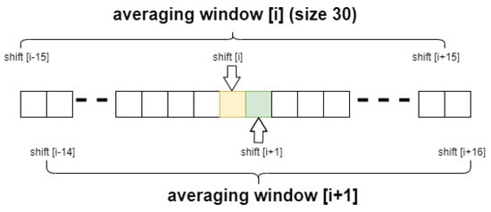 Schema of moving average calculation for exemplary i and i+1 shift.