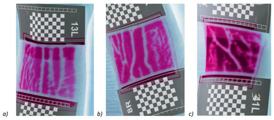 Negatives of the reference images (better readability when applied). (a) 13L, (b) 8R, (c) 31L describes the number of participant and which hand was tested, L—left, R—right.