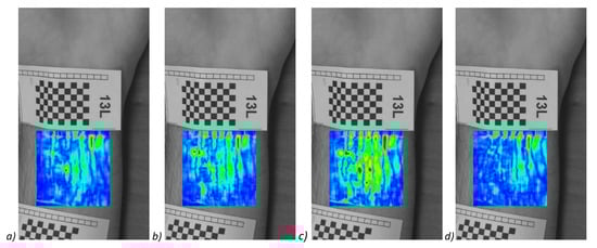 Exemplary images that makes up to the Figure 12—shift maps for frames #35,78,101,119 (a–d) of 120.