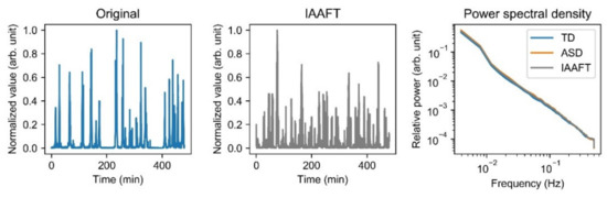 - Schreiber, T.; Schmitz, A. Surrogate time series. Phys. D Nonlinear Phenom. 2000, 142, 346–382. [Google Scholar] [CrossRef]