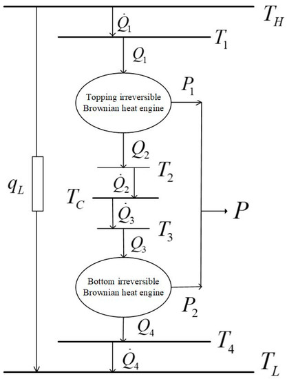 The combined TBHE model without an intermediate HR is also feasible in theory. When the intermediate HR is not considered, the topping and bottom TBHEs transfer heat directly through viscous medium. As a result, the temperature of CR of the topping HE and the HR of the bottom HE is dynamic and the corresponding mathematical solution process becomes very complicated. Therefore, this paper introduces an intermediate reservoir to couple the topping and bottom HEs for determining the temperatures and , similar to that in Ref. [107], for macro combined HE, with which the subsequent solution process is greatly simplified.