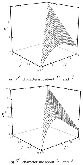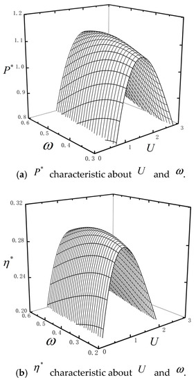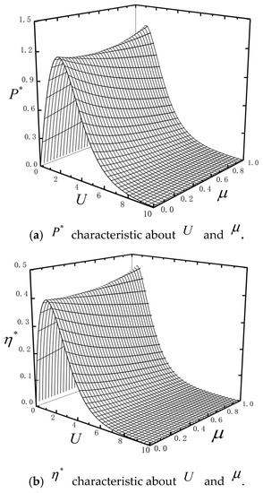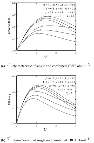 When the combined TBHE is free from external load (), the analytical expressions of power () and efficiency () are