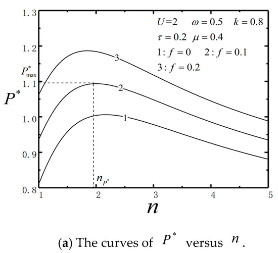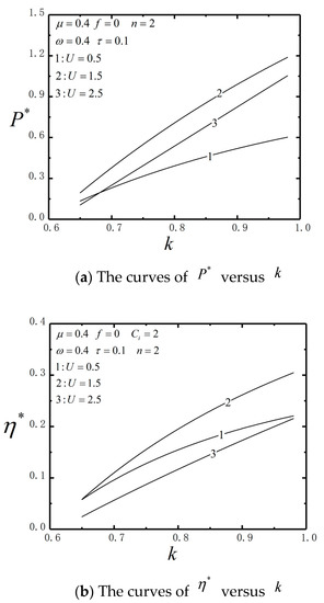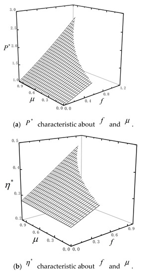 When and , according to Equations (36) and (37), and the corresponding efficiency () can be obtained. Similarly, when is maximized, and the corresponding power () can be obtained by the method of evaluation extreme value. The performance analysis and optimization work performed for the combined two-stage thermal Brownian heat engine belongs to the first type of research problem of finite time thermodynamics. Due to its special working mechanism, the expressions of performance parameters such as power and efficiency respect to its design parameters are highly non-linear. It is very difficult to obtain the analytical solution. Therefore, numerical methods are applied for intensive analyses.