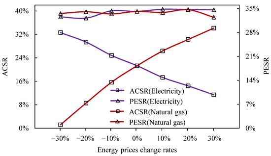 Variations of average ACSR/PESR of the IES with energy price changes.