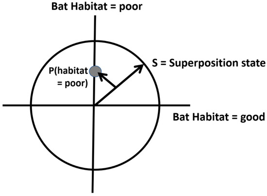 The two habitat conditions, good and poor, can be graphically represented in a Hilbert space, as shown in Figure 1. In this graphical depiction of uncertainty, the habitat can be in both good and poor states simultaneously, to varying degrees (probabilities).