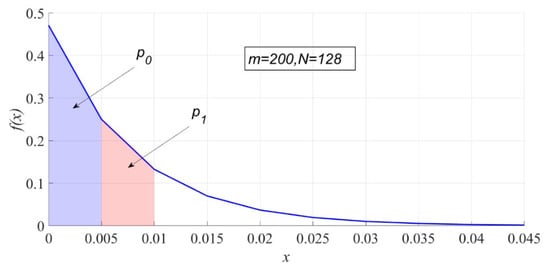 is essentially the area of the interval on the probability density map. Figure 2 shows and when is 200, and is 128.