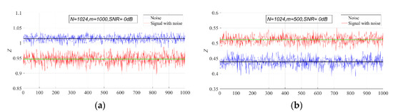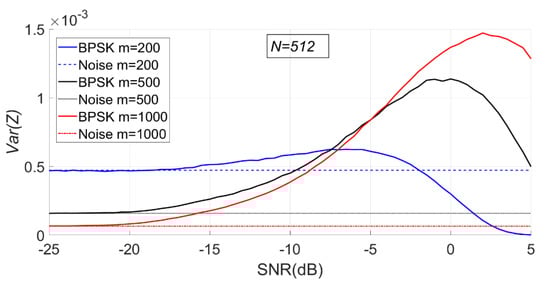 When is 512, is 200, 500 and 1000, respectively. The detection results of the BSPK signal are shown in Figure 19, Figure 20 and Figure 21.