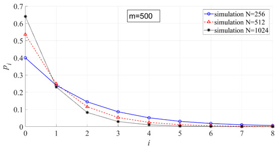The MSEs of the actual and theoretical probabilities of these experiments are given in Table 3. The deviations between the actual and theoretical detection probabilities was very small when was 512 or 1024, however were higher when was 256.