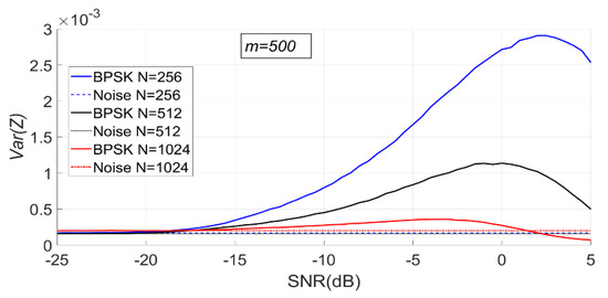 When is 500, is 256, 512, and 1024, respectively. The detection results for the BSPK signal are shown in Figure 22, Figure 23 and Figure 24.