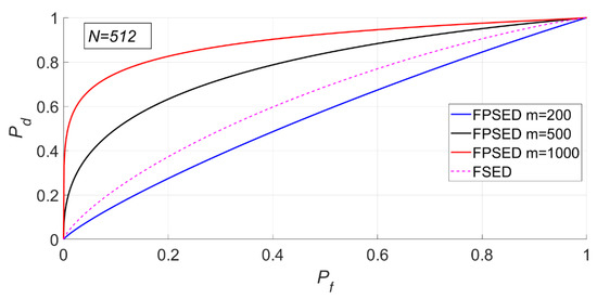 Receiver operating characteristic (ROC) curve of FSED and PSER entropy detectors ( = 200, 500, 1000, = 512).