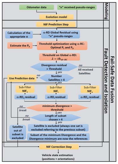 - Makkawi, K.; Ait-Tmazirte, N.; El Najjar, M.E.; Moubayed, N. Combination of Maximum Correntropy Criterion & α-Rényi Divergence for a Robust and Fail-Safe Multi-Sensor Data Fusion. In Proceedings of the 2020 IEEE International Conference on Multisensor Fusion and Integration for Intelligent Systems (MFI), Karlsruhe, Germany, 14–16 September 2020; pp. 61–67. [Google Scholar]