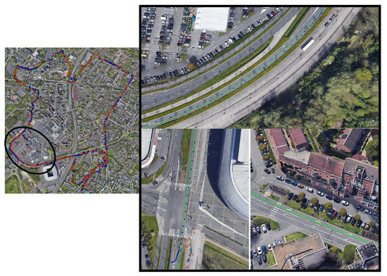 - Brakatsoulas, S.; Pfoser, D.; Salas, R.; Wenk, C. On map-matching vehicle tracking data. In Proceedings of the 31st International Conference on Very Large Data Bases, Trondheim, Norway, 30 August–2 September 2005; pp. 853–864. [Google Scholar]