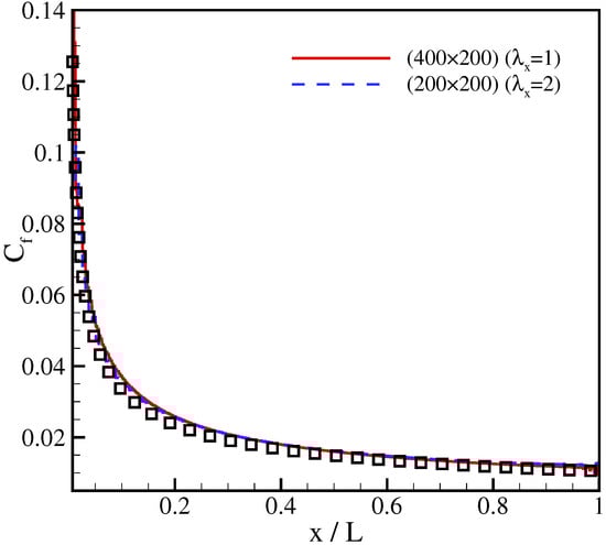 Similar to the previous test case, grid stretching in x-direction with was used in order to reduce the number of grid points in that direction while the temperature was set to , same as in Section 3.2