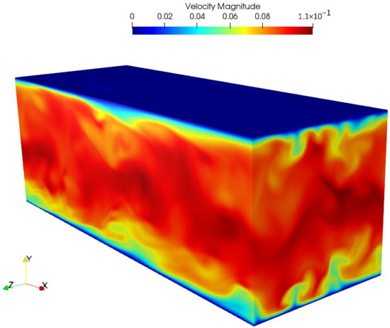 A snapshot of the velocity magnitude is shown in Figure 11.