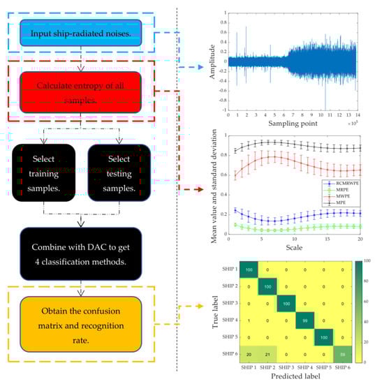 - Li, Y.; Jiao, S.; Geng, B.; Zhou, Y. Research on feature extraction of ship-radiated noise based on multi-scale reverse dispersion entropy. Appl. Acoust. 2021, 173, 107737. [Google Scholar] [CrossRef]