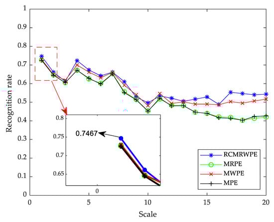 - In the comparative experiment of different classification methods, the RCMRWPE-based classification method shows much better performance than MPE, MWPE, and MRPE-based classification methods under most single scales.