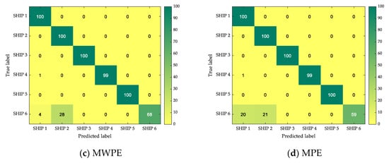 - The increase of embedding dimension will cause the loss of information in ship-radiated noise, but the RCMRWPE-based classification method still has a good classification performance, which further proves the distinguishing ability and stability of the proposed feature extraction scheme.