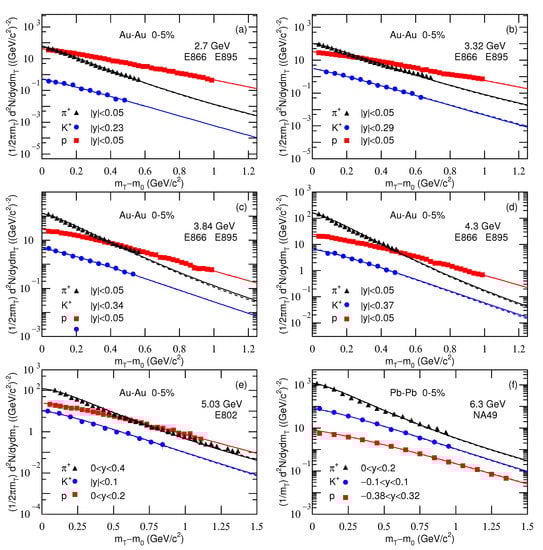 - Li, L.-L.; Liu, F.-H. Energy dependent kinetic freeze-out temperature and transverse flow velocity in high energy collisions. Eur. Phys. J. A 2018, 54, 169. [Google Scholar] [CrossRef]