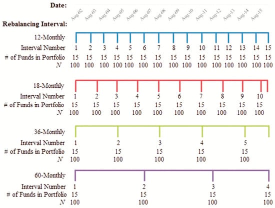 Figure 3 provides an illustration of the rebalancing interval regimes considered in the analysis of this study. The rebalancing intervals are an important component of this analysis as they are constructed to replicate the choices, which should be made by a typical retail investor. We adopt four different rebalancing intervals as follows: 12-, 18-, 36-, and 60-monthly rebalancing intervals throughout the overall sample period to examine the performance of portfolios formed using ratings based on either Morningstar or the EU-E models.