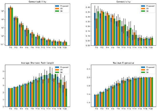 Figure 8. As a comparison, we use the network evolution diagram of the ER network after being attacked as a control experiment and select relevant indicators as a comparison description.