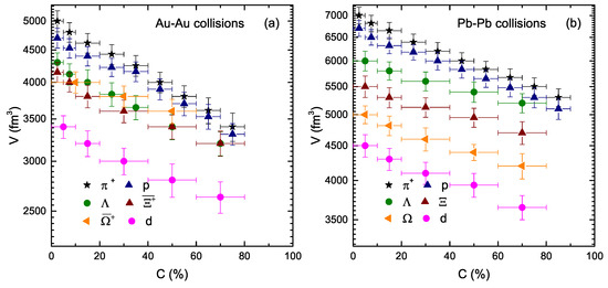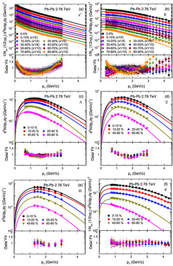 - Abelev, B.; Adam, J.; Adamová, D.; Adare, A.M.; Aggarwal, M.M.; Rinella, G.A.; Agnello, M.; Agocs, A.G.; Agostinelli, A.; Ahammed, Z.; et al. Centrality dependence of π, K, and p production in Pb-Pb collisions at = 2.76 TeV. Phys. Rev. C 2013, 88, 044910. [Google Scholar] [CrossRef]