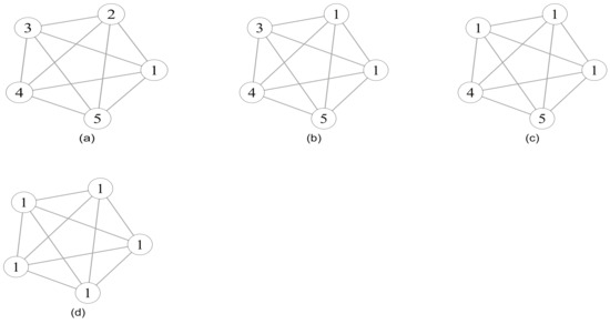 Illustration of label propagation. Labels are updated one by one from (a–d). Due to the high density of edges, all nodes acquire the same label.