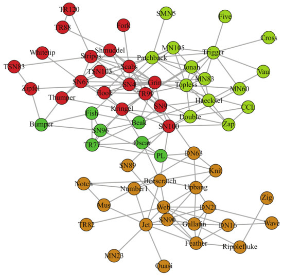 - Lusseau, D. The emergent properties of a dolphin social network. Proc. Biol. Sci. 2003, 270 (Suppl. 2), S186. [Google Scholar] [CrossRef] [PubMed]