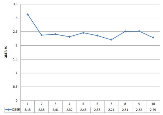 Statistical data on the operation of the quantum protocol BB84, QBER; 1–6 refer to iterations.