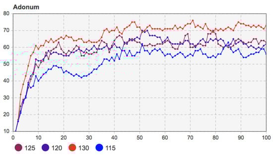 From Figure 9, we can see that with the increase of the use cost, the degree of innovation diffusion of mobile applications was significantly reduced, which means that the use cost affected the user’s willingness to adapt to mobile applications. This effect appeared in the early stage of diffusion. Compared with the use cost c = 120, the diffusion speed of the use cost c = 105 in the first 10 time steps was significantly faster, and the diffusion effect was better. With the evolution of social networks, the spread of mobile applications in user groups was further deepened. Although the use cost was different, the evolution trend of user group decision-making was still similar. At the final moment, mobile applications with a higher use cost had fewer adopters in the diffusion results. This shows that the differences in mobile applications’ use costs cannot be eliminated through user communication or interactive social learning, or be reflected in the final diffusion results.