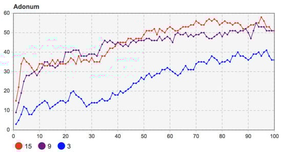 According to Figure 11, when the proportion of seed users was 9% and 15%, the high proportion of seed users (15%) grew more rapidly under the local network effect. It had more adopters in the initial diffusion period. With the progress of social learning among users and the continuous evolution of social network structure, mobile applications’ diffusion degree in user groups gradually deepened. The number of adopters when the proportion of seed users was 9% increased more quickly than when the proportion of seed users was 15%. At the end of diffusion, the number of users who chose to adopt mobile applications tends to be stable, and the trends under different proportions were similar. The simulation results show that the number of early seed users did not significantly impact the mobile applications’ innovation diffusion. User groups’ social learning behavior and the evolution of the social network structure can make up for early adopter shortages and eventually bring similar diffusion results.
