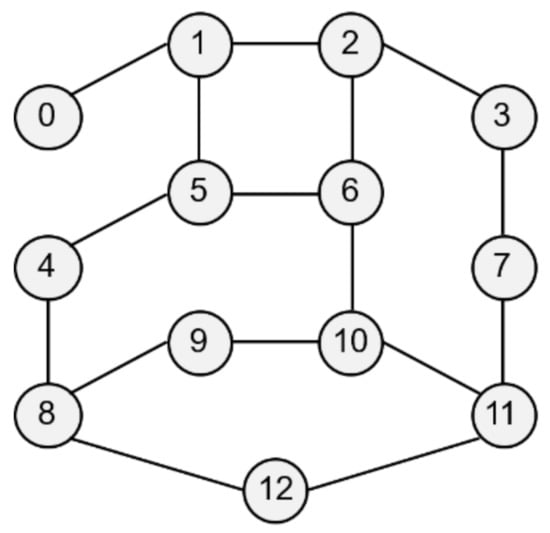 The network topology shown in Figure 4 is used. The service characteristics and the usage per client are changed according to the purpose of simulation. Each network node, which is an edge node, has its own computing resource. It is assumed that there are several types of services in the network that respond to edge computing-based requests, and each service operates at least one edge server. A client, as a service user, is connected to the network through a single node and uses one or more services. The resource and traffic factors per usage are determined within a specific range, which can be treated as information that can be empirically obtained by system monitoring.