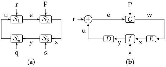 We begin by providing a formal description of the systems labeled in Figure 1a. Their input–output relationships are given by the possibly-varying deterministic mappings (For notational simplicity, we omit writing their time dependency explicitly):