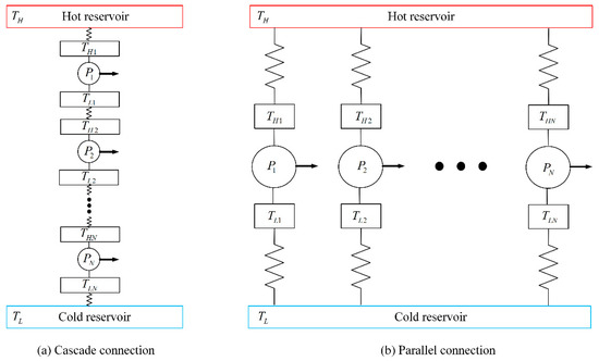 47. Lewins, J.D. Optimizing cascades of endo-reversible heat engines. Int. J. Mech. Eng. Educ. 1999, 27, 91–101. [Google Scholar] [CrossRef]