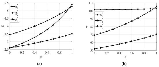 At this time, in order to ensure the concavity of the objective functions of the manufacturer and the retailer so that the research has practical significance, it was necessary to satisfy ; that is, limited to their respective green investment costs constraints, the manufacturer and retailer could not increase the market demand for green products by endlessly improving the level of the product’s green degree and green promotion. What needs special explanation is that the comparison and analysis section below were also conducted under this precondition.