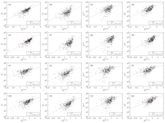 which corresponds to the case of uniform population (or GDP) density []. The standard deviation of the data points from this reference power law quantifies the strength of heterogeneity of the spatial distribution of population and GDP in mainland China.