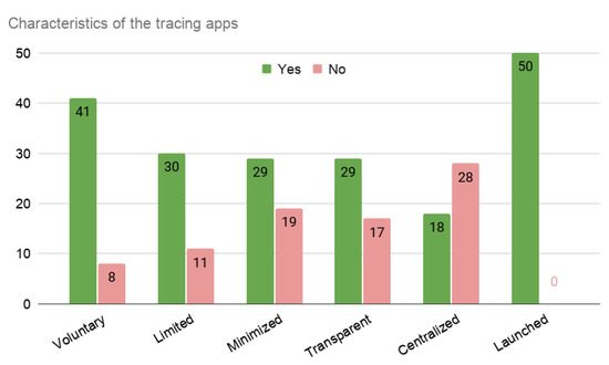 The voluntariness and limited information tracking are present in a proportion of 80–20. The remaining features: minimization of the information, transparency, and decentralization in a 60–40 balance.