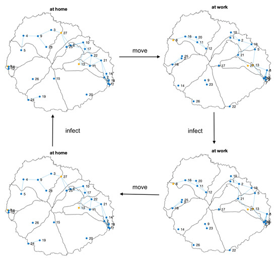 - Gómez-Gardeñes, J.; Soriano-Paños, D.; Arenas, A. Critical regimes driven by recurrent mobility patterns of reaction–diffusion processes in networks. Nat. Phys. 2018, 14, 391–395. [Google Scholar] [CrossRef]