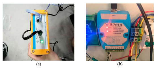 The signal acquisition device of test bench. (a) the DFT5100 dynamic data collector; (b) the signal acquisition card USB 4AD Plus.